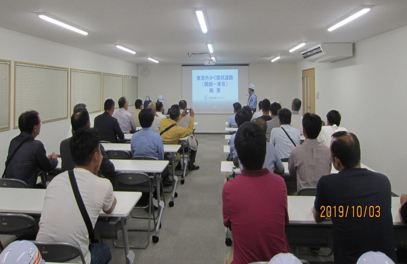 目 的: 現在施工中の大型プロジェクト工事を見学し、情報収集することにより、当土木施工管理技士会に所属する技術者の技術力の向上を図り、見聞を広めることに寄与するのと同時に、会員相互の技術情報交換の場とする。